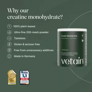 Prémiový kreatin monohydrát vás optimálně podpoří při zvyšování vašeho fyzického výkonu.